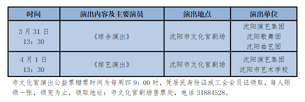沈阳演艺集团3月31日—4月1日惠民演出安排