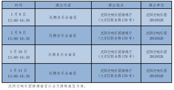 沈阳交响乐团1月8日-11日共享演出安排