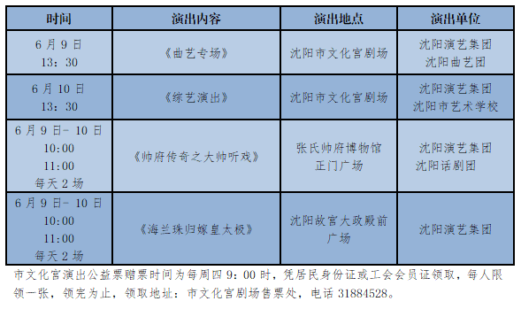 沈阳演艺集团6月9日——10日惠民演出安排