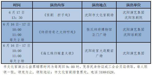 沈阳演艺集团6月16日——17日惠民演出安排