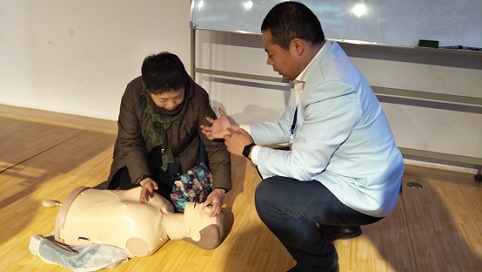 此次活动特邀沈阳市应急救护学会安鑫老师担任主讲,安老师为现场的百余位中老年市民讲授了急救包内急救物资的使用方法、常见突发疾病和突发事件中自救互救的应急处理技术、心肺复苏要领等知识。通过这次急救培训,学员们基本掌握了初级急救技能以及自救、互救的基本常识,大大提高了在面对意外事故和危重病发生时的应急能力。