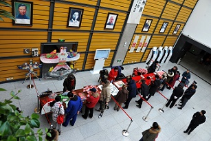 春节期间沈阳市图书馆邀请30余位辽沈地区书法家到活动现场为市民写春联、送祝福同时还将名家诗词楹联作品悬挂在展览大厅展出,便于市民品鉴。为烘托节日氛围,图书馆工作人员精心选编谜语300条,张贴在多功能厅,开展有奖猜谜活动为了让读者近距离接触非遗文化市图书馆特邀多位非遗传承人开展现场演示活动,“星期六剧场”还举办了非遗展演节目,陪读者欢度佳节。